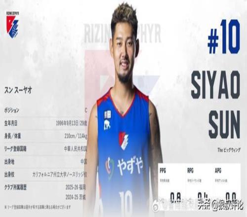 另外一個前CBA榜眼孫思堯上個賽季未能獲得茨城機器人續(xù)約后,他選擇加盟B2福岡新銳,身處更低一個級別的聯(lián)賽,他同樣未能獲得太多的機會。